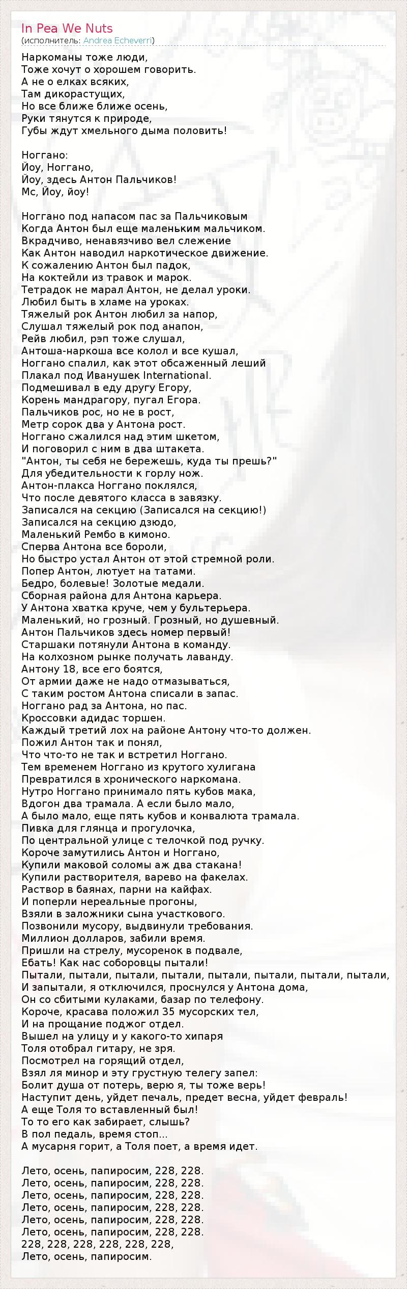 А как ты думаешь, о чем песня "In Pea We Nuts" ?