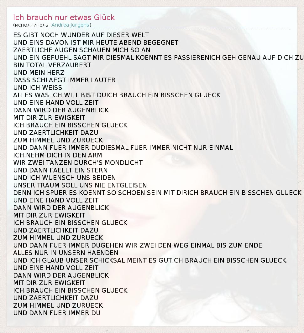 ГлавнаяИсполнителиAndrea JürgensIch brauch nur etwas Glück