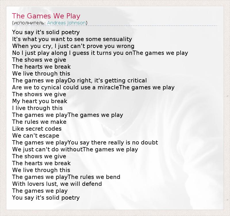 А как ты думаешь, о чем песня "The Games We Play" ?