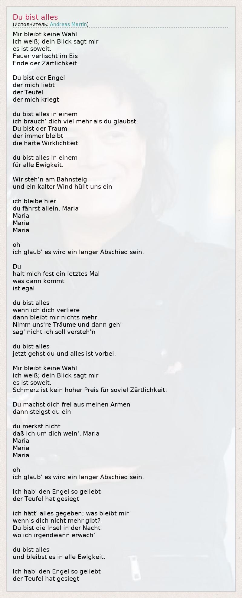 А как ты думаешь, о чем песня "Du bist alles" ?
