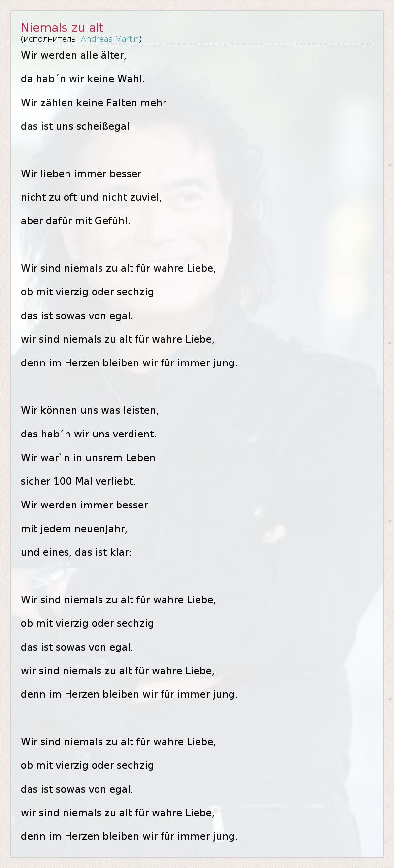А как ты думаешь, о чем песня "Niemals zu alt" ?