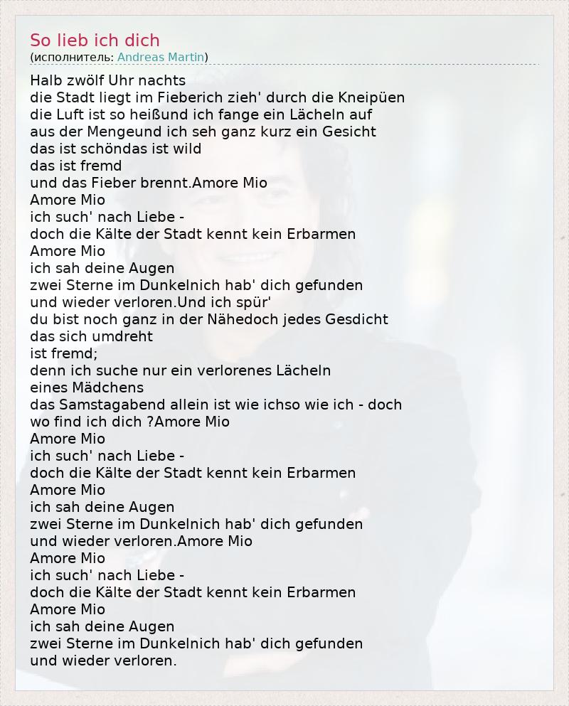 А как ты думаешь, о чем песня "So lieb ich dich" ?