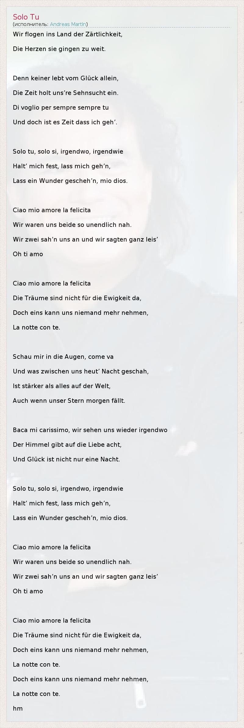 А как ты думаешь, о чем песня "Solo Tu" ?