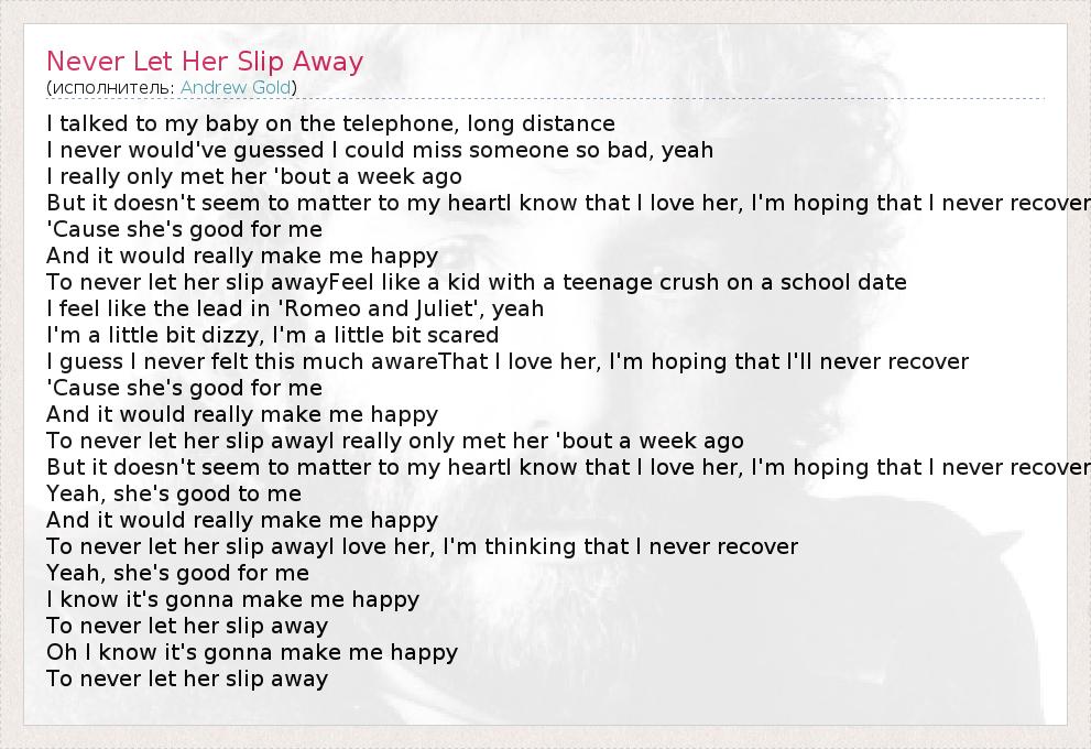А как ты думаешь, о чем песня "Never Let Her Slip Away" ?