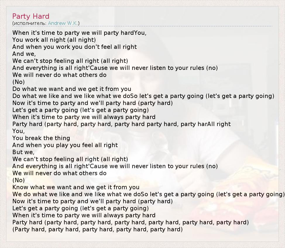Party hard (party hard, party hard, party hard party hard, party harAll right
