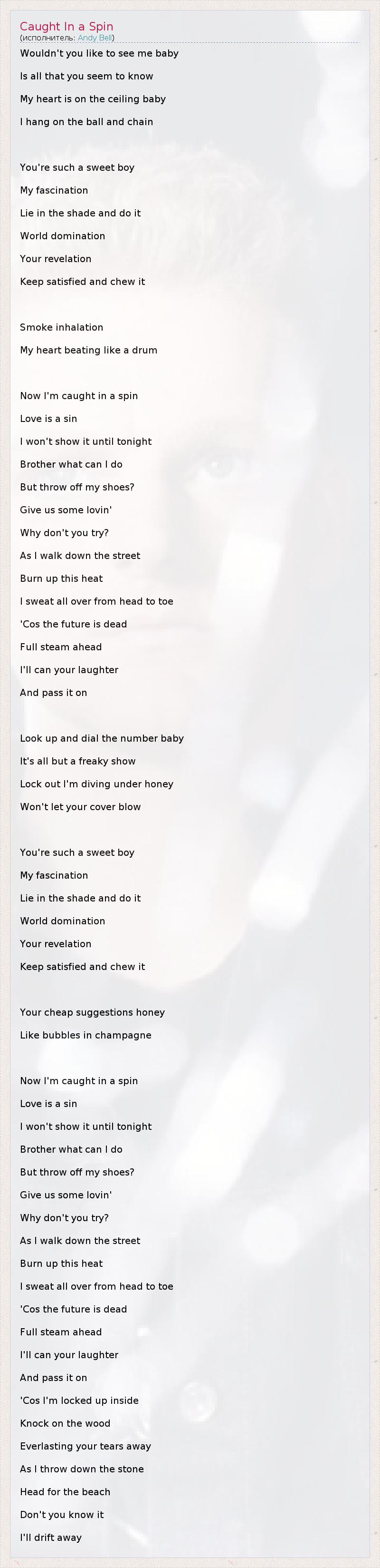 А как ты думаешь, о чем песня "Caught In a Spin" ?