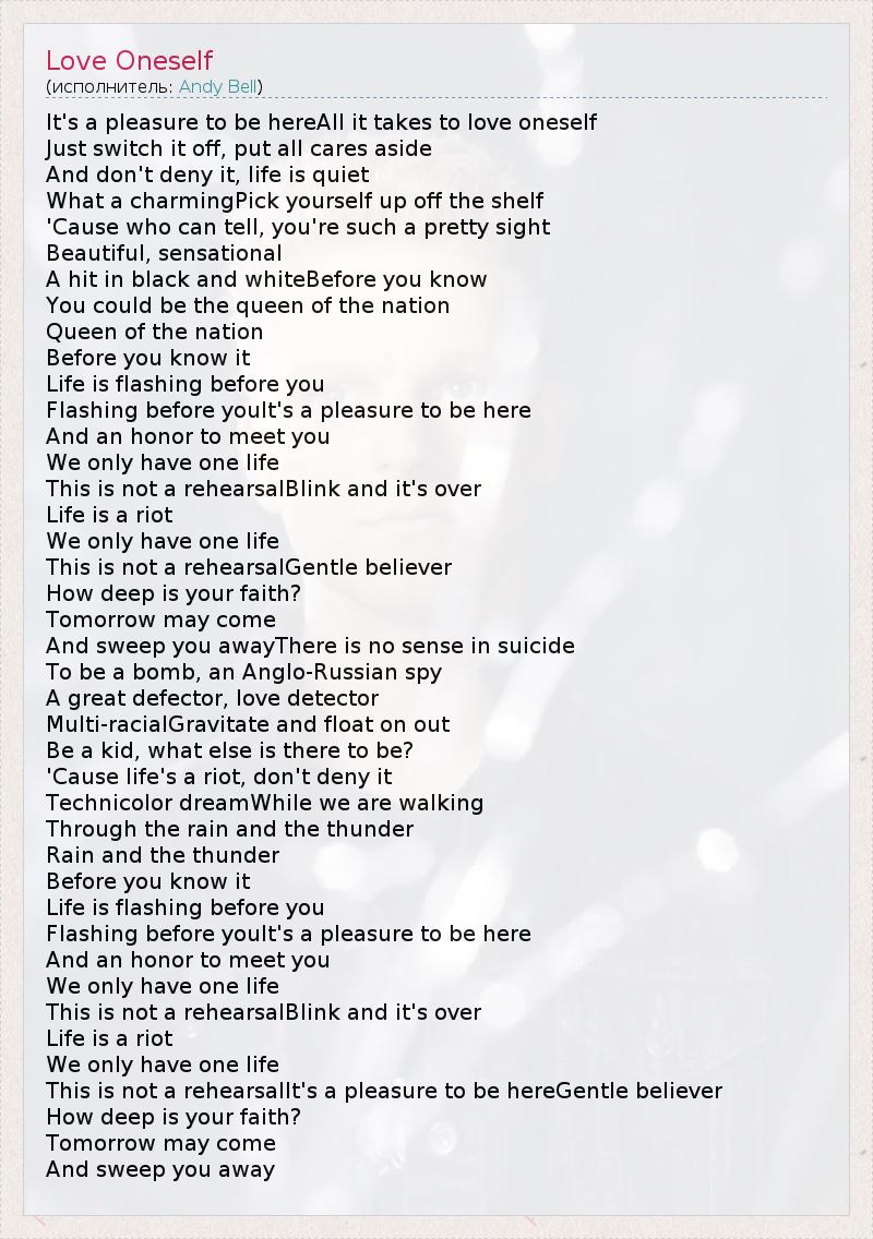 А как ты думаешь, о чем песня "Love Oneself" ?