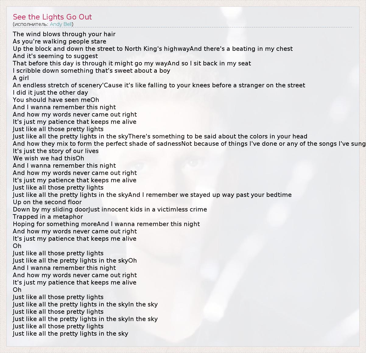 А как ты думаешь, о чем песня "See the Lights Go Out" ?