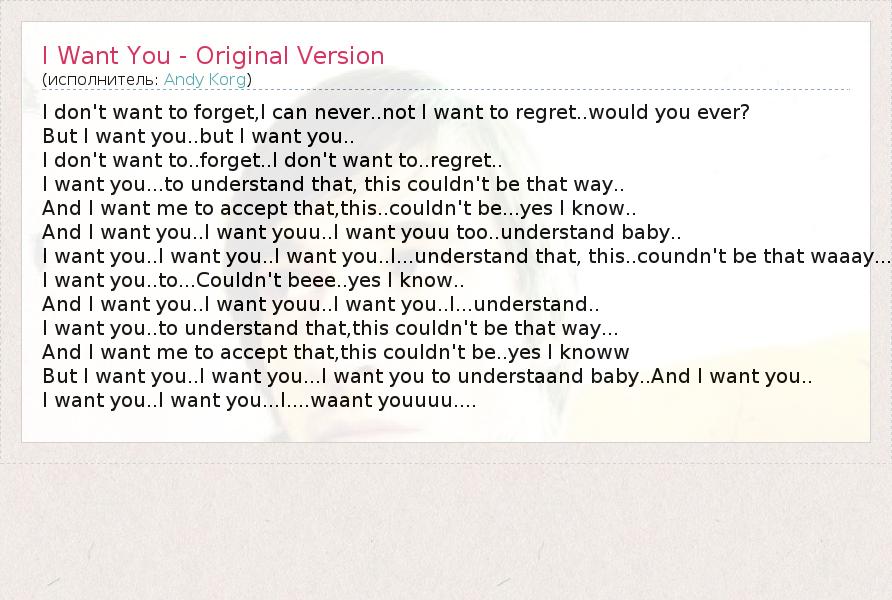 А как ты думаешь, о чем песня "I Want You - Original Version" ?