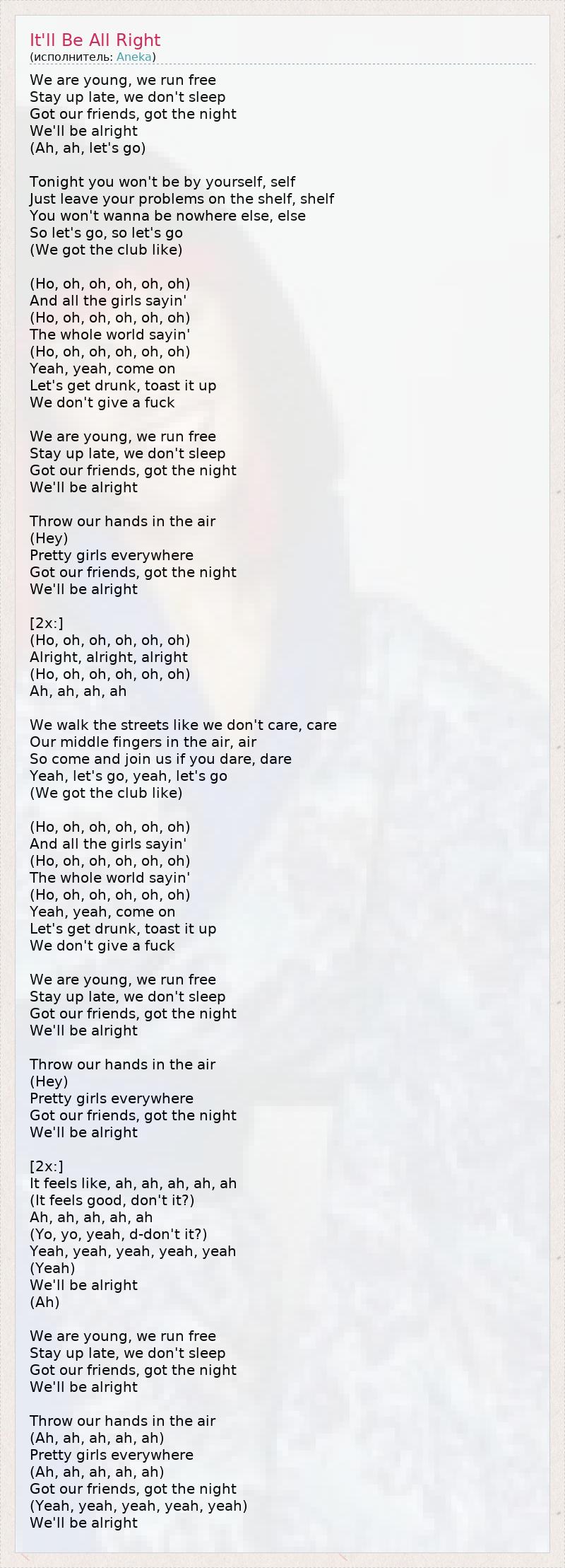А как ты думаешь, о чем песня "It'll Be All Right" ?