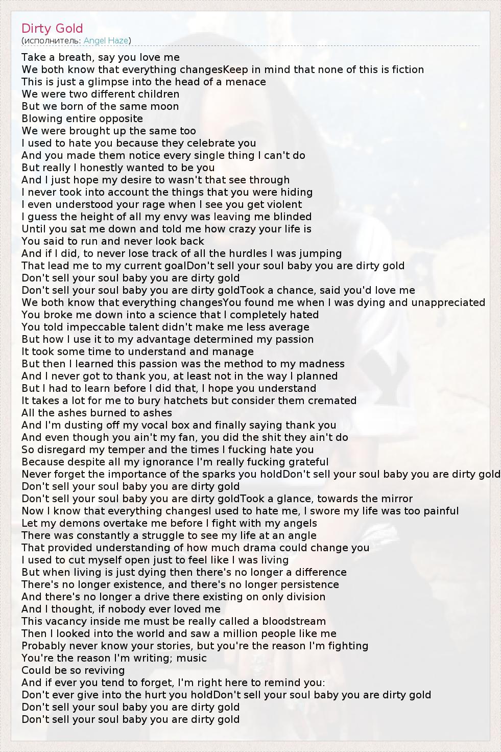 А как ты думаешь, о чем песня "Dirty Gold" ?