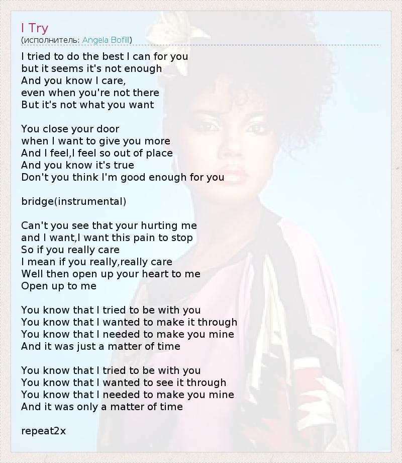 Это интересно:Энджела Бофилл - Американская R&B певица и писательница (дата рождения 2 мая, 1954 год, в Бронксе)Дискография:01. Angie – 1978 02. Angel of the Night – 1979 03. Something About You – 1981 04. Too Tough – 198305. Teaser – 198306. Let Me Be the One – 198407. Tell Me Tomorrow – 198508. Intuition – 198809. I Wanna Love Somebody – 199310. Love in Slow Motion – 1996