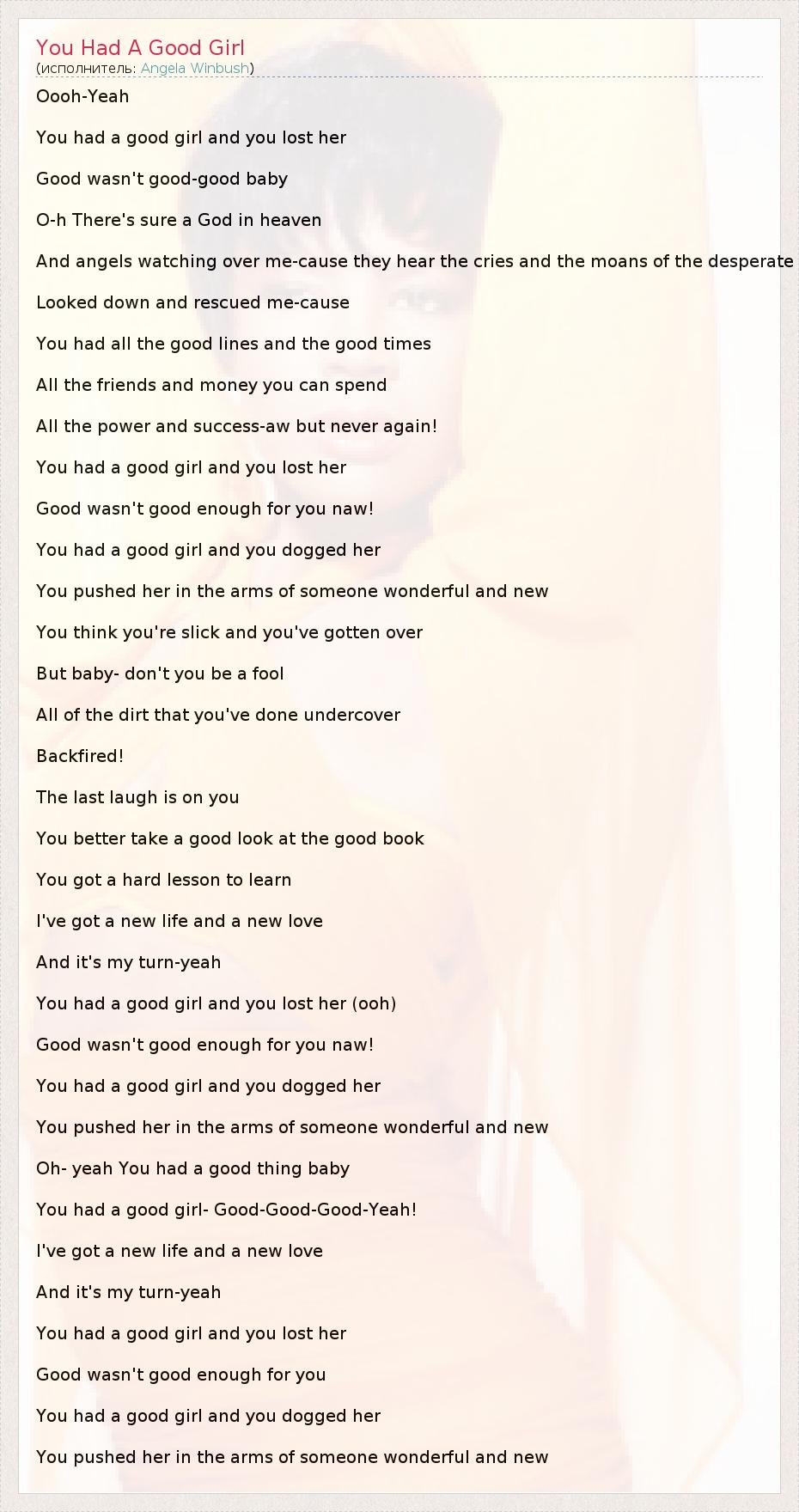 А как ты думаешь, о чем песня "You Had A Good Girl" ?