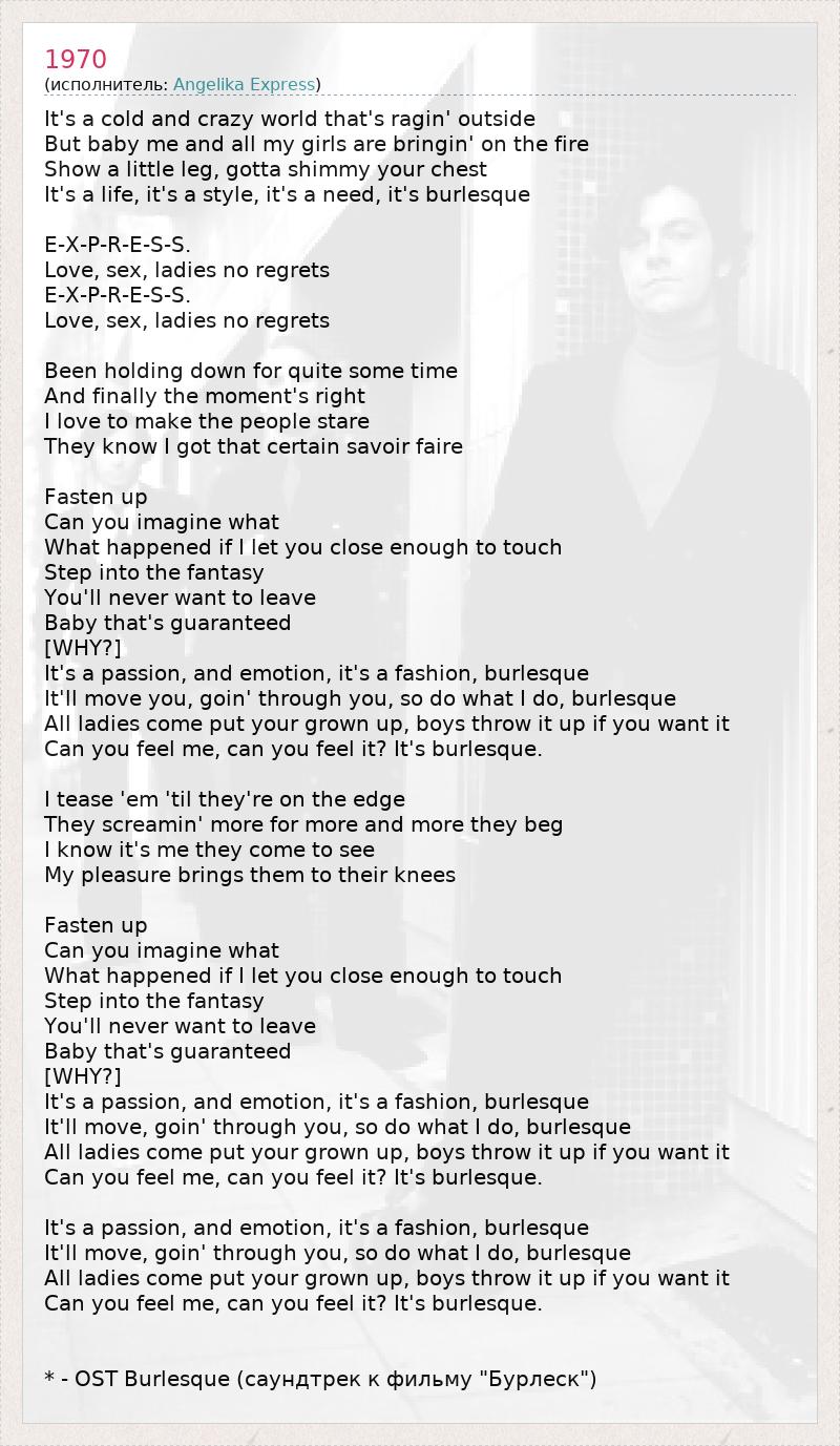 Вы чувствуете меня, вы чувствуете это? Это – бурлеск!