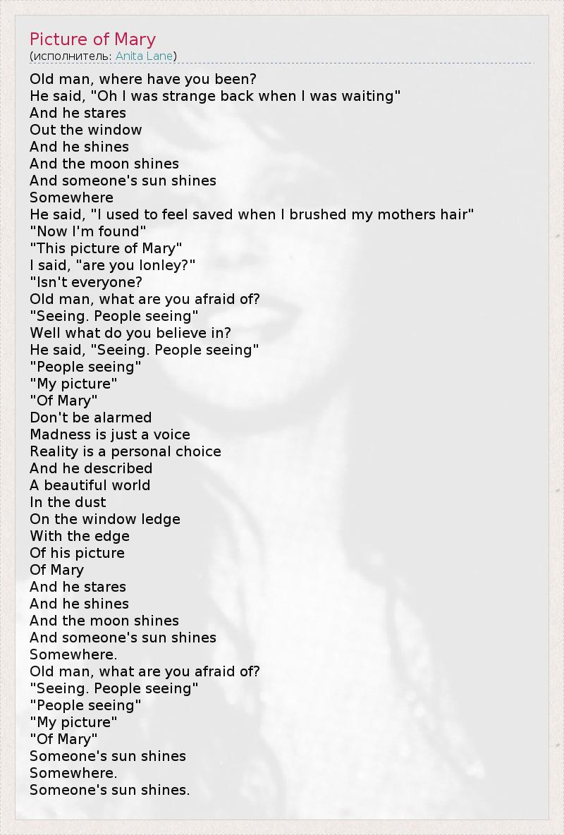 А как ты думаешь, о чем песня "Picture of Mary" ?