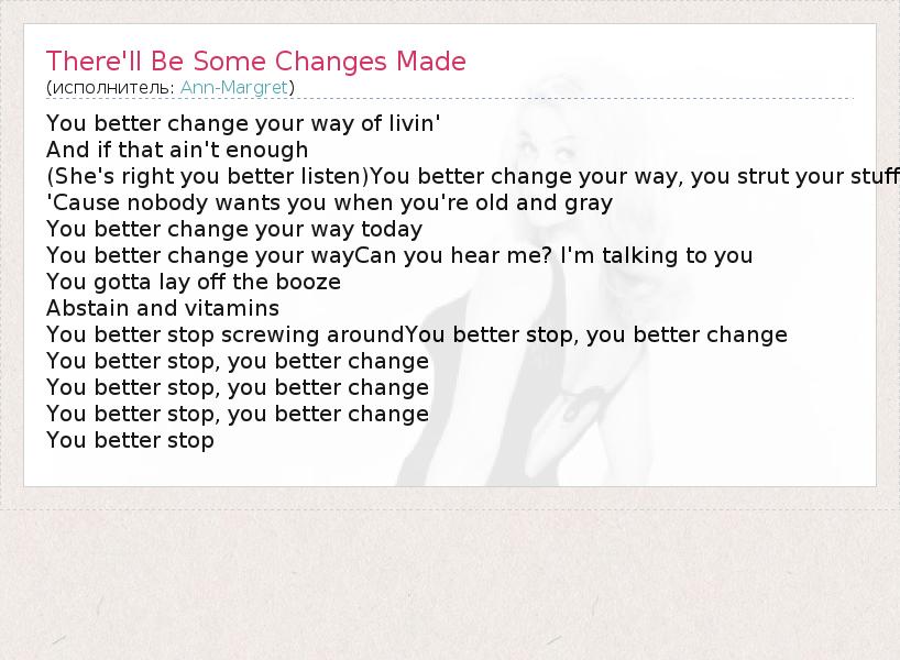 А как ты думаешь, о чем песня "There'll Be Some Changes Made" ?