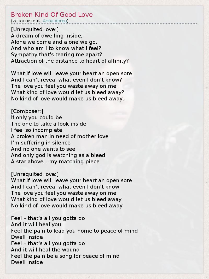 А как ты думаешь, о чем песня "Broken Kind Of Good Love" ?