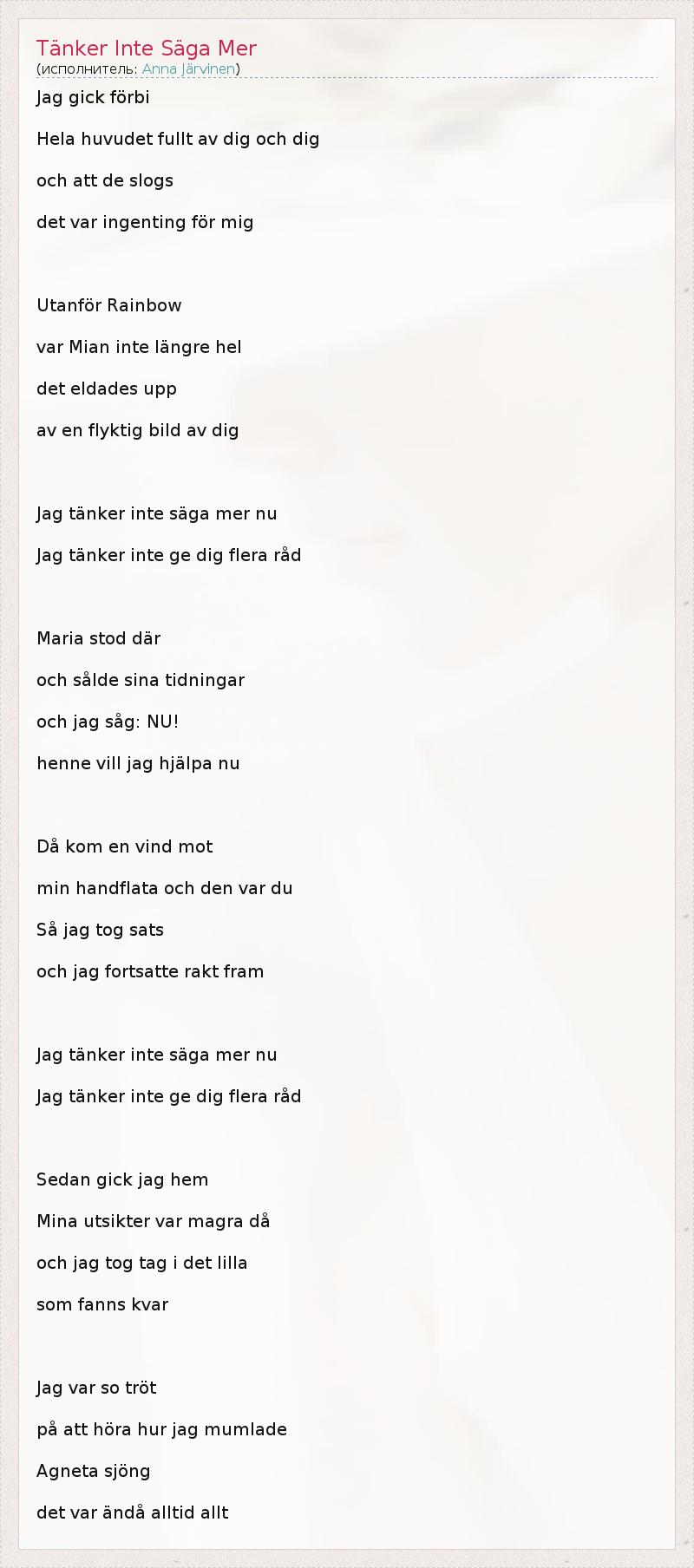 А как ты думаешь, о чем песня "Tänker Inte Säga Mer" ?
