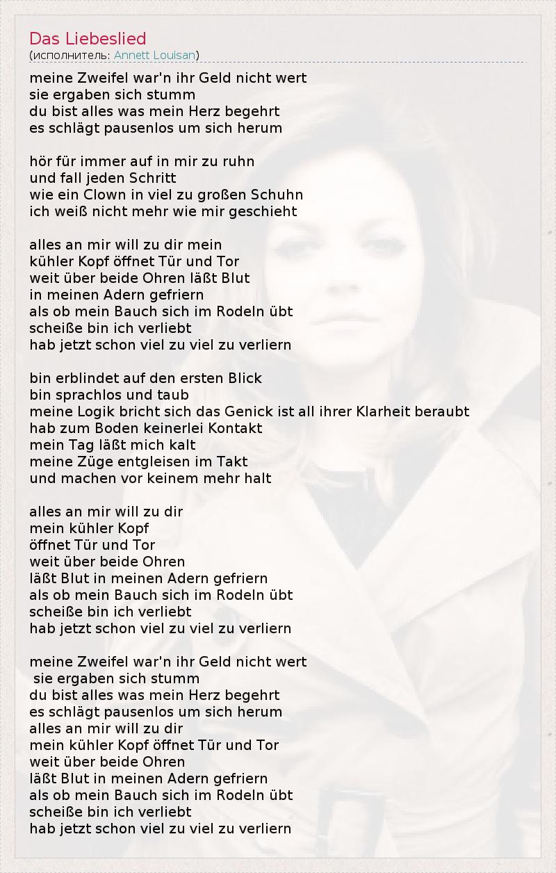 А как ты думаешь, о чем песня "Das Liebeslied" ?