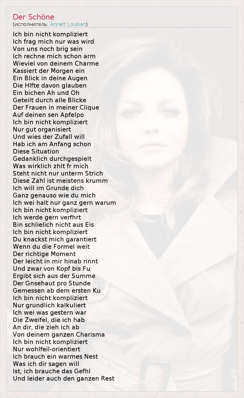 А как ты думаешь, о чем песня "Der Schöne" ?