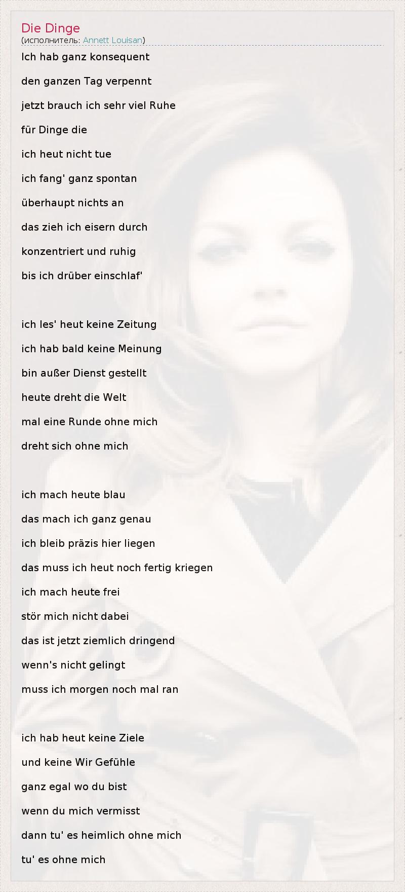 А как ты думаешь, о чем песня "Die Dinge" ?