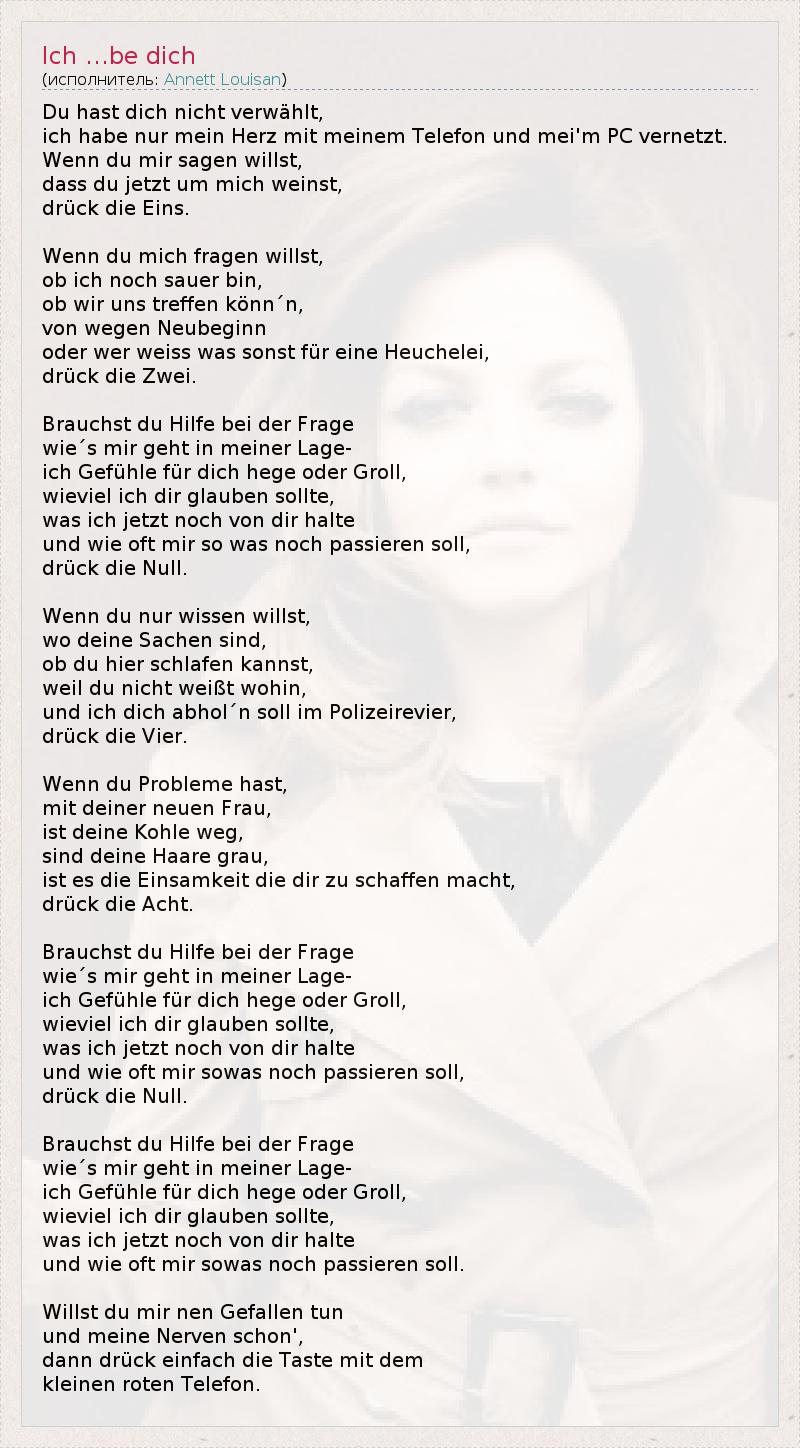 А как ты думаешь, о чем песня "Ich ...be dich" ?