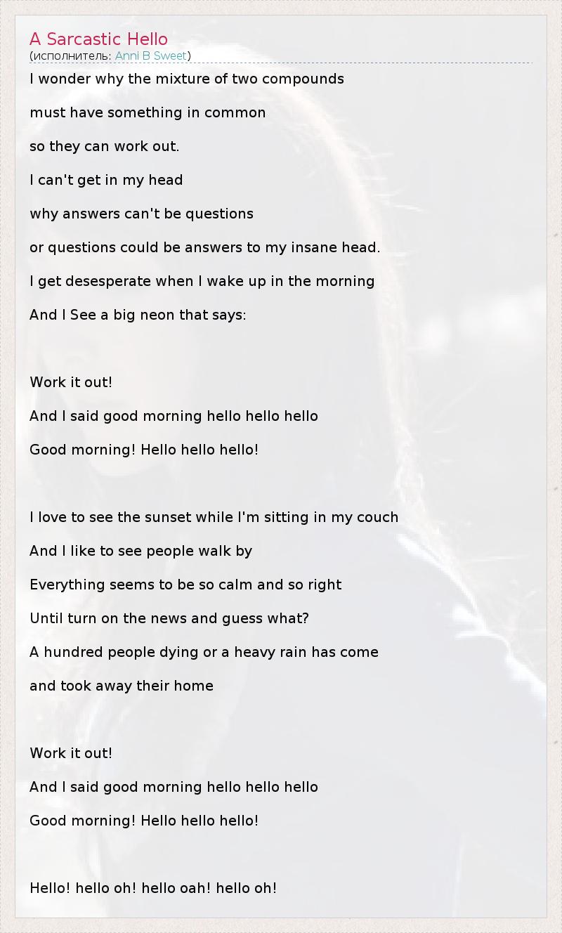 А как ты думаешь, о чем песня "A Sarcastic Hello" ?