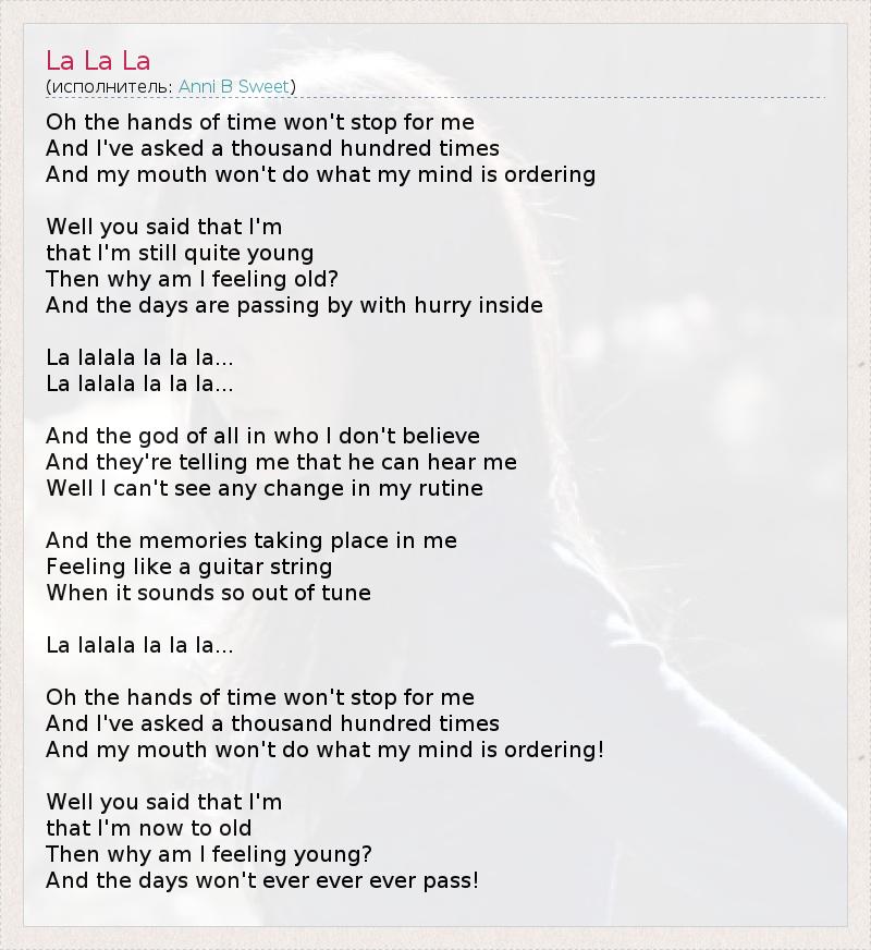 Это интересно:Anni B Sweet - сценический псевдоним испанской исполнительницы Аны Лопез Родригез. Ана исполняет свои песни в жанрах indie и folk. Начала увлекаться музыкой ещё в самом раннем детстве, в подростковом возрасте начала сочинять свои первые композиции и играть для друзей. С 2007 года Ана выступает как сольный исполнитель под псевдонимом Anni B Sweet, распространяя свои записи через MySpace. В 2008 году Ана... продолжение