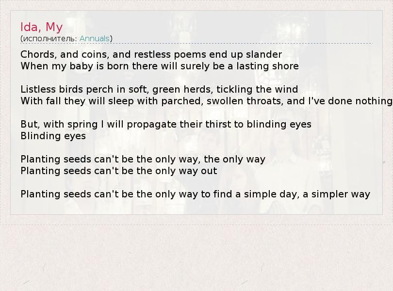 Это интересно:Annuals is a six-piece indie-pop outfit from Raleigh and Chapel Hill, North Carolina. The band was started by Adam Baker in 2003 as a side project of the still active sister band Sunfold, formerly known as Sedona and headed up by lead guitarist Kenny Florence.Ace Fu Records signed Annuals in the fall of 2005 and then released their debut LP Be He Me on October 17, 2006. The members of Annuals are also all deeply involved in their own music-business venture, Terpsikhore Records, which is owned by benefactor J.K. Horne. Terpsikhore released Annuals' first demo, titled "Lay Down Dry", in the summer of 2005, as well as the Git' Got EP in the summer of 2006.Annuals appeared... продолжение