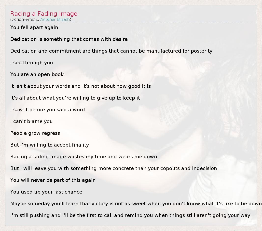 А как ты думаешь, о чем песня "Racing a Fading Image" ?