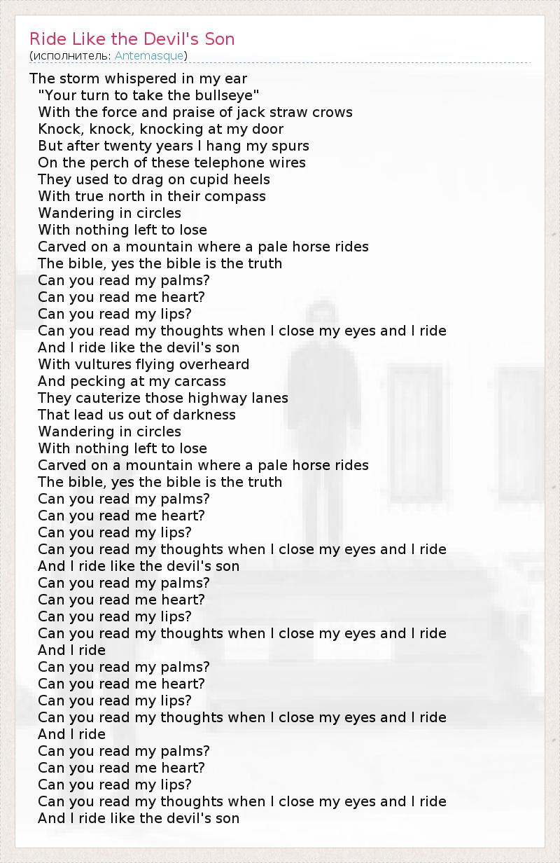 А как ты думаешь, о чем песня "Ride Like the Devil's Son" ?