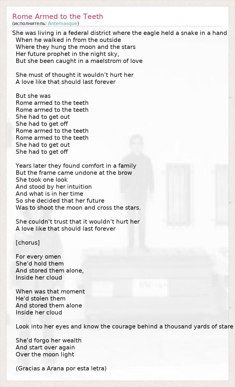 А как ты думаешь, о чем песня "Rome Armed to the Teeth" ?