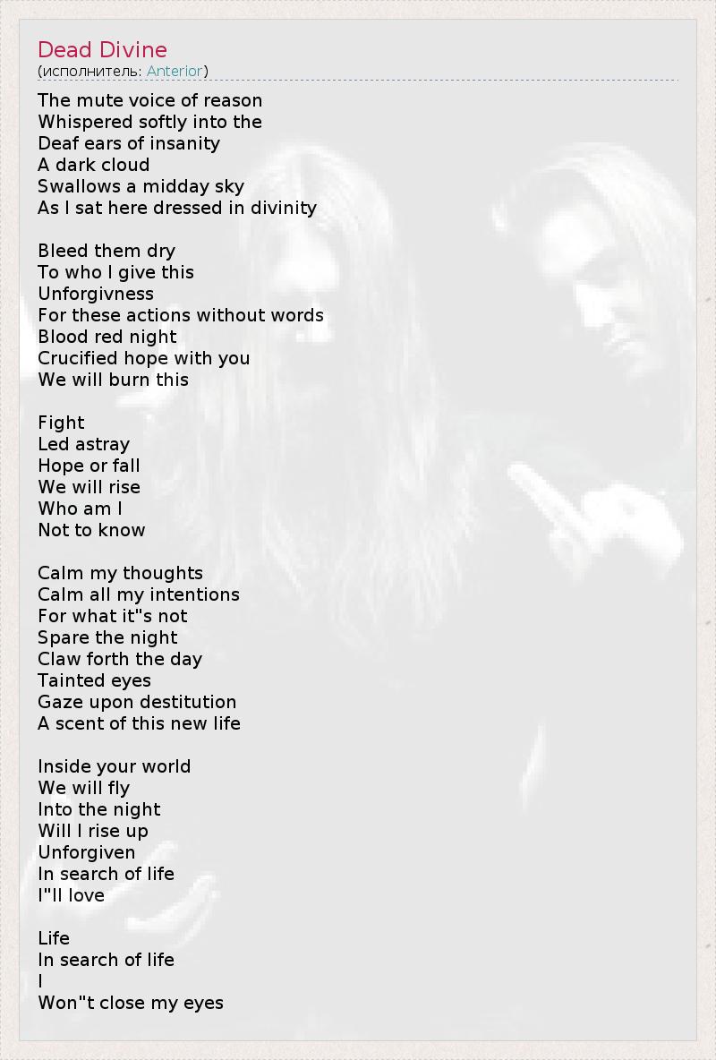 А как ты думаешь, о чем песня "Dead Divine" ?
