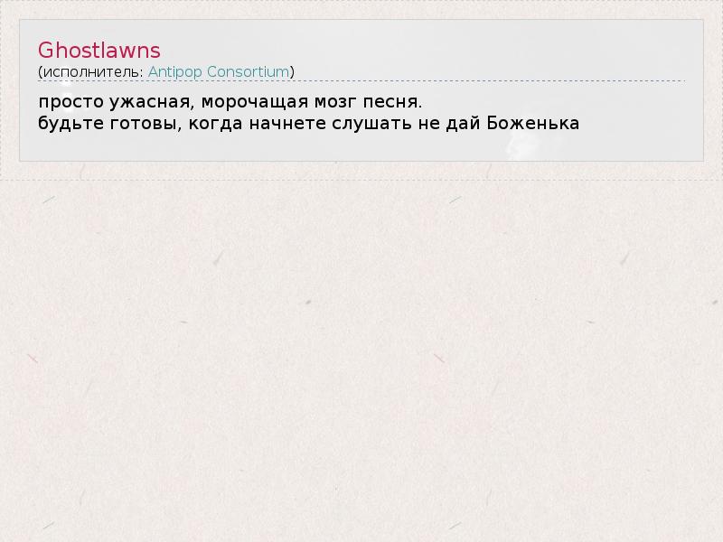 просто ужасная, морочащая мозг песня. будьте готовы, когда начнете слушать не дай Боженька