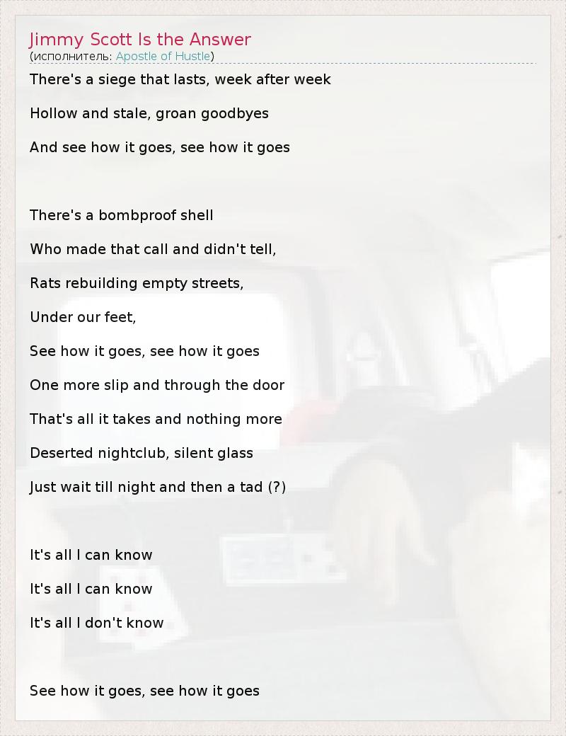 А как ты думаешь, о чем песня "Jimmy Scott Is the Answer" ?