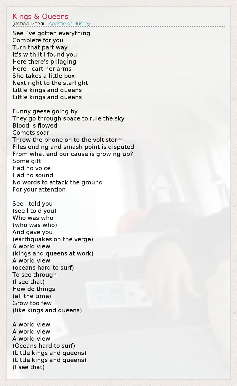 А как ты думаешь, о чем песня "Kings & Queens" ?