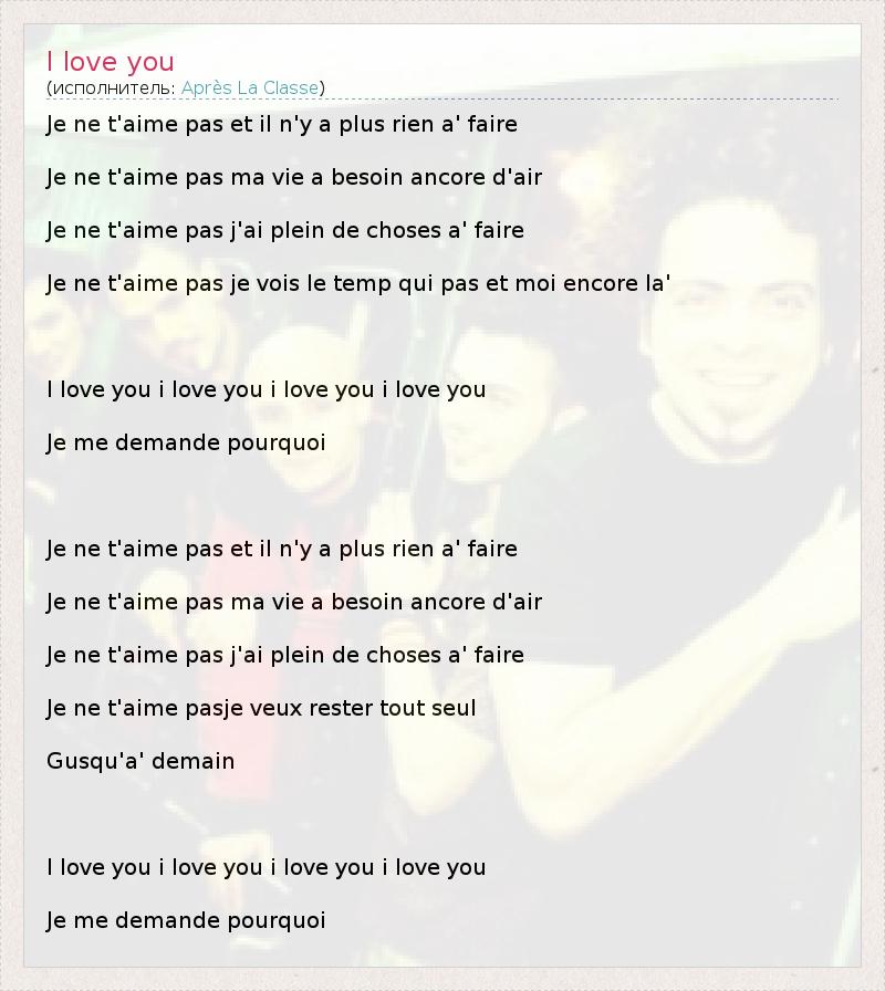 Je ne t'aime pas je vois le temp qui pas et moi encore la'