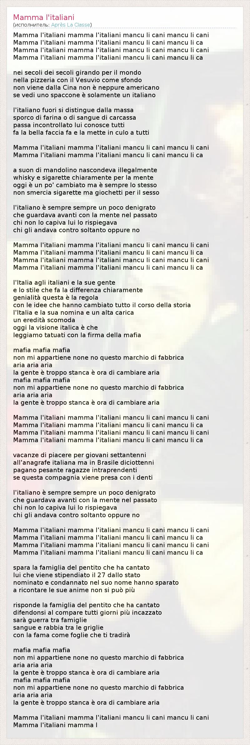 А как ты думаешь, о чем песня "Mamma l'italiani" ?
