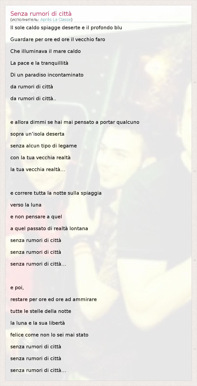 А как ты думаешь, о чем песня "Senza rumori di città" ?