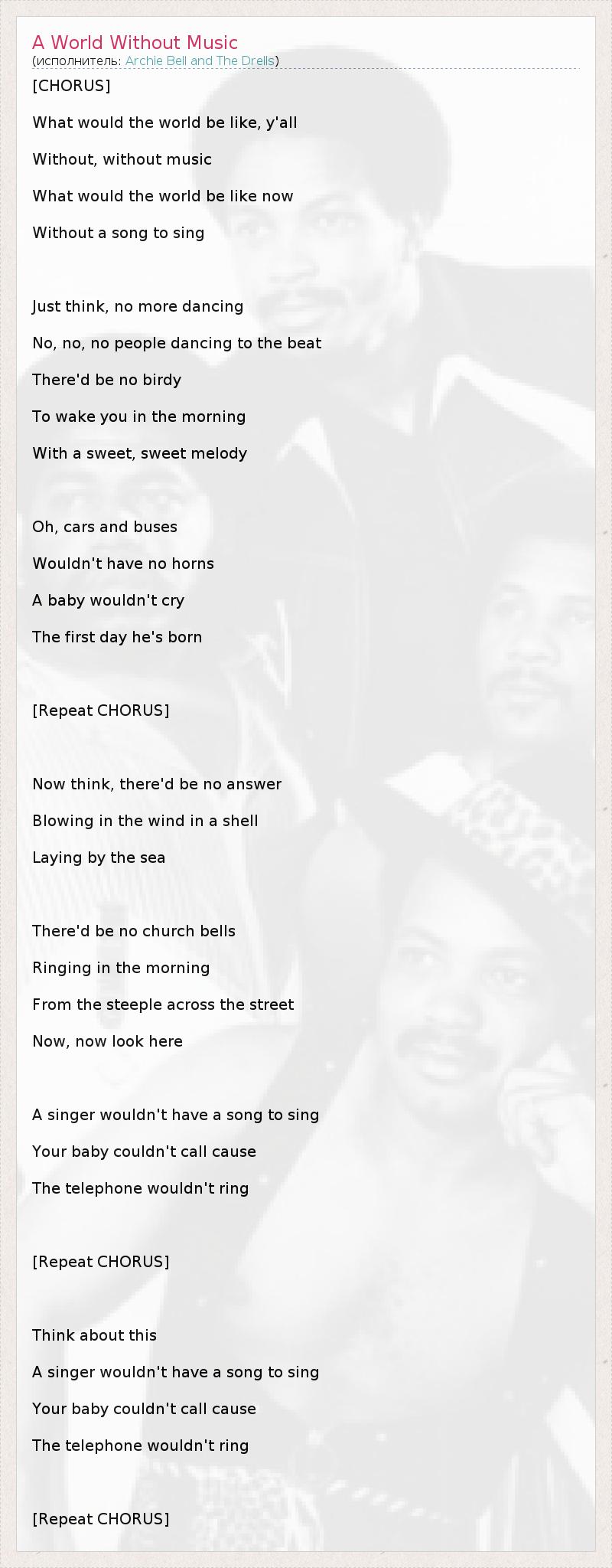 А как ты думаешь, о чем песня "A World Without Music" ?