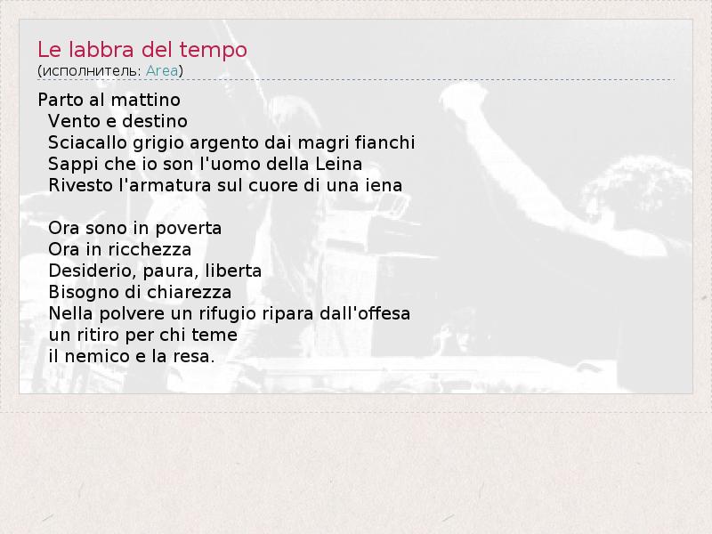 А как ты думаешь, о чем песня "Le labbra del tempo" ?