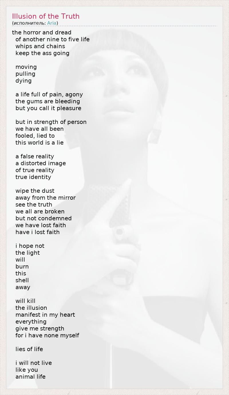 А как ты думаешь, о чем песня "Illusion of the Truth" ?