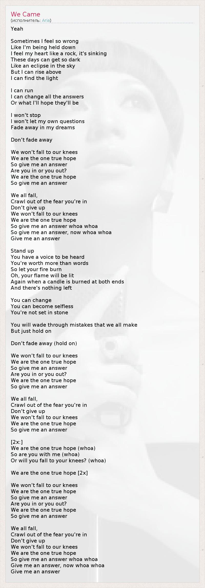 А как ты думаешь, о чем песня "We Came" ?