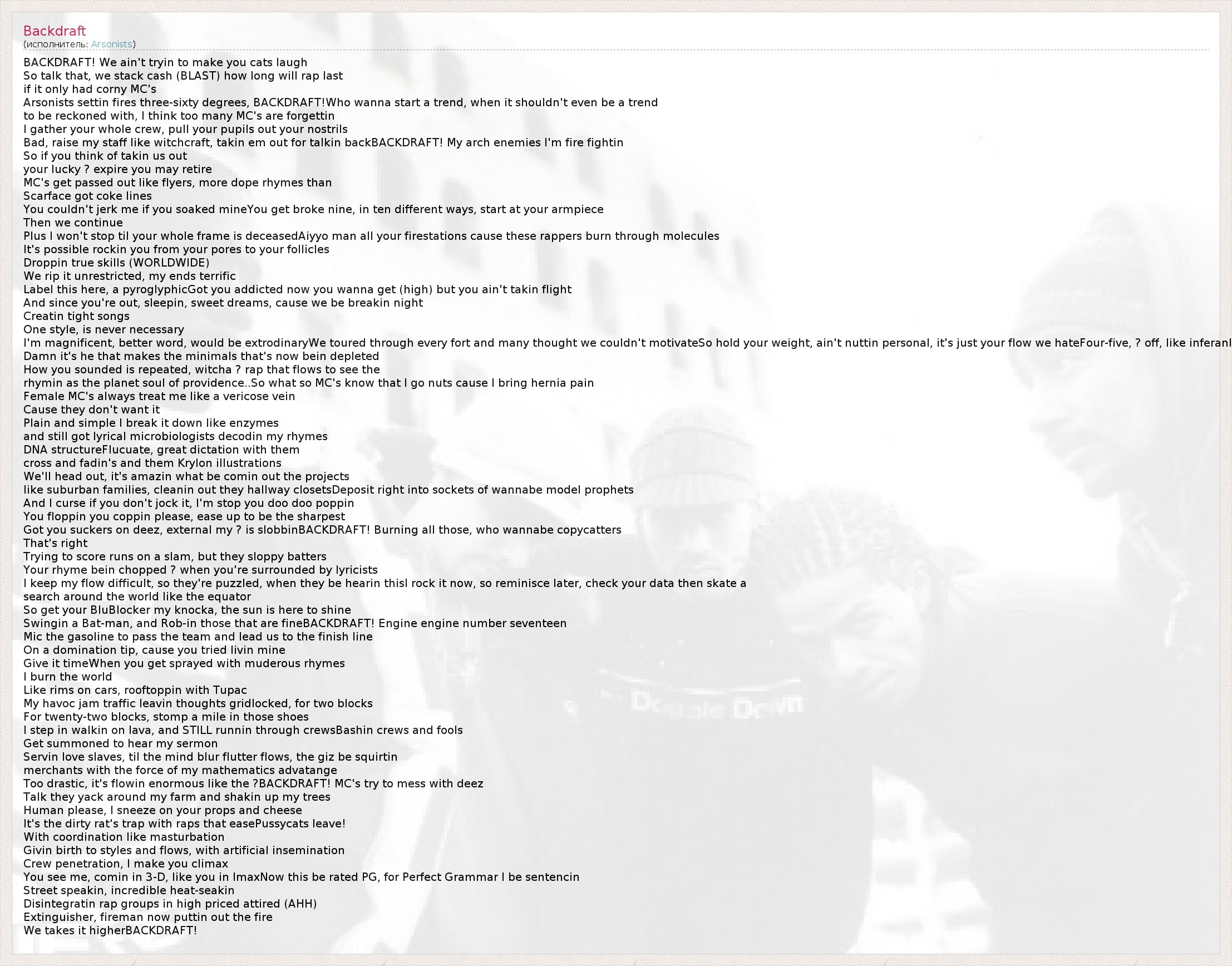 Got you suckers on deez, external my ? is slobbinBACKDRAFT! Burning all those, who wannabe copycatters
