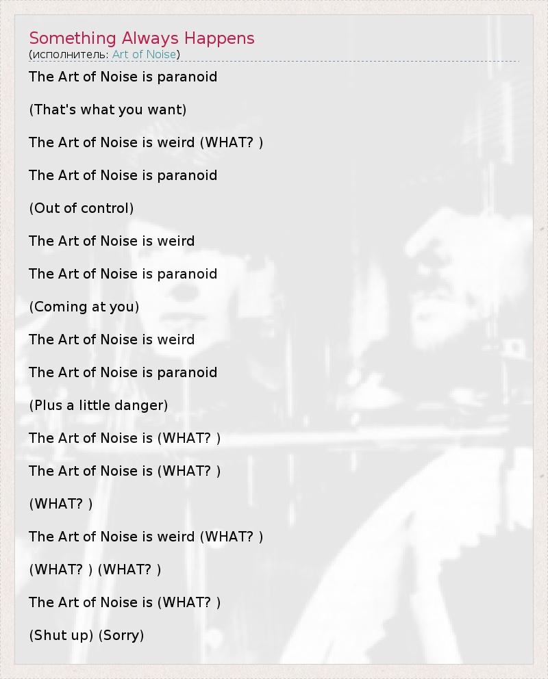 ГлавнаяИсполнителиArt of NoiseSomething Always Happens