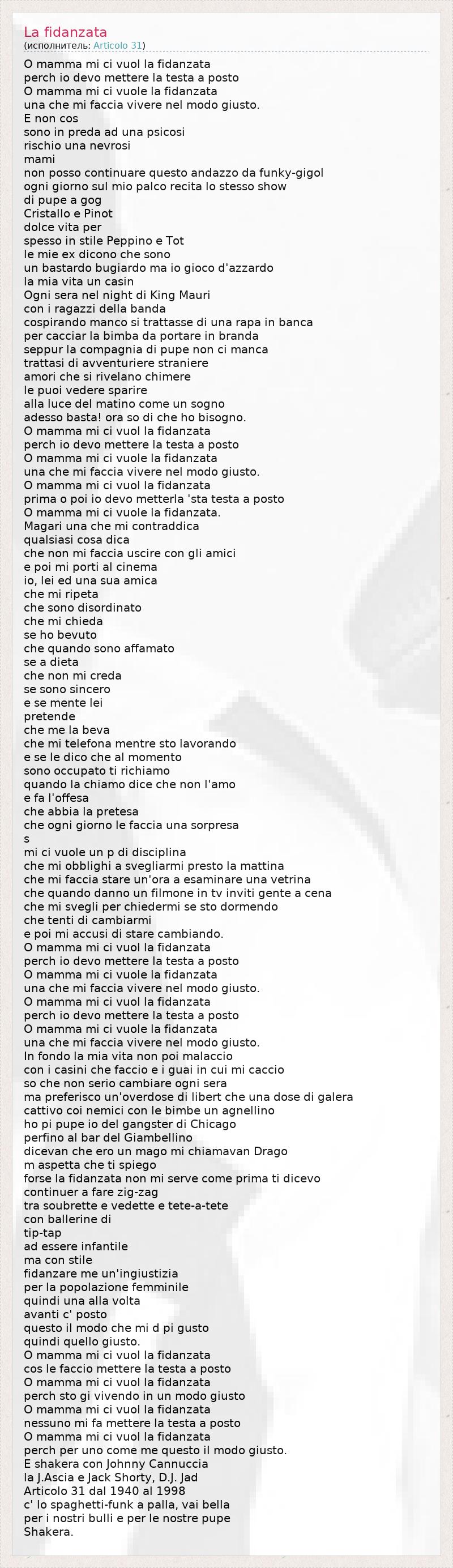А как ты думаешь, о чем песня "La fidanzata" ?
