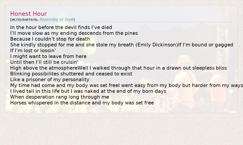 А как ты думаешь, о чем песня "Honest Hour" ?