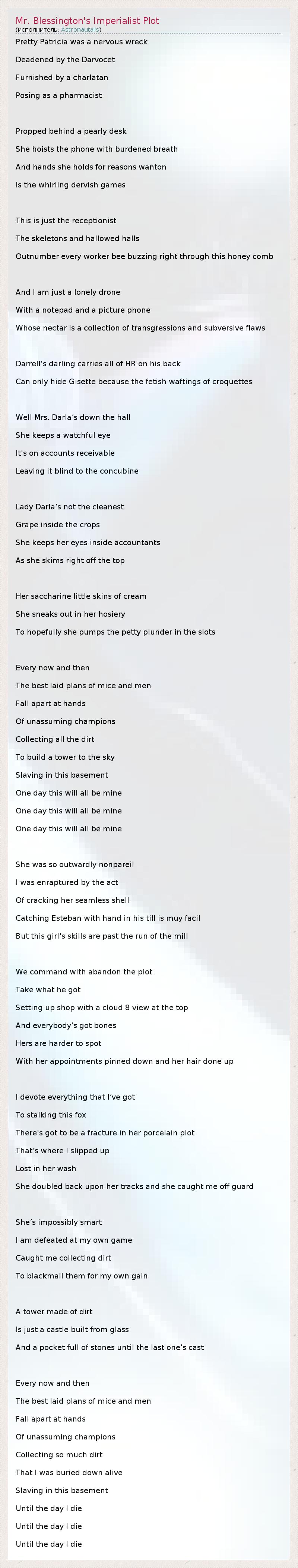 А как ты думаешь, о чем песня "Mr. Blessington's Imperialist Plot" ?