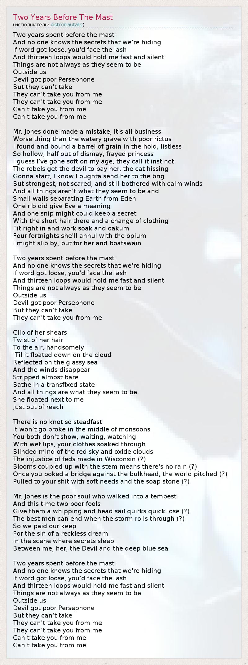 А как ты думаешь, о чем песня "Two Years Before The Mast" ?