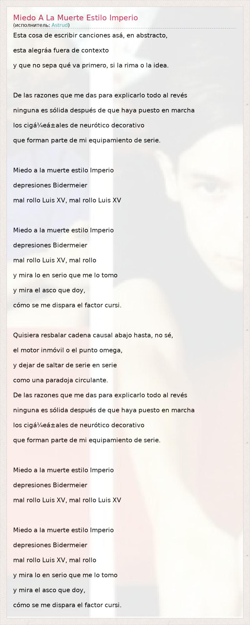 А как ты думаешь, о чем песня "Miedo A La Muerte Estilo Imperio" ?